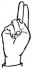 На ћирилици написано ВОЈНА БОГИЋ састоји се из 10 слова [?]. Исписано ћириличном једноручном азбуком за глувонеме: